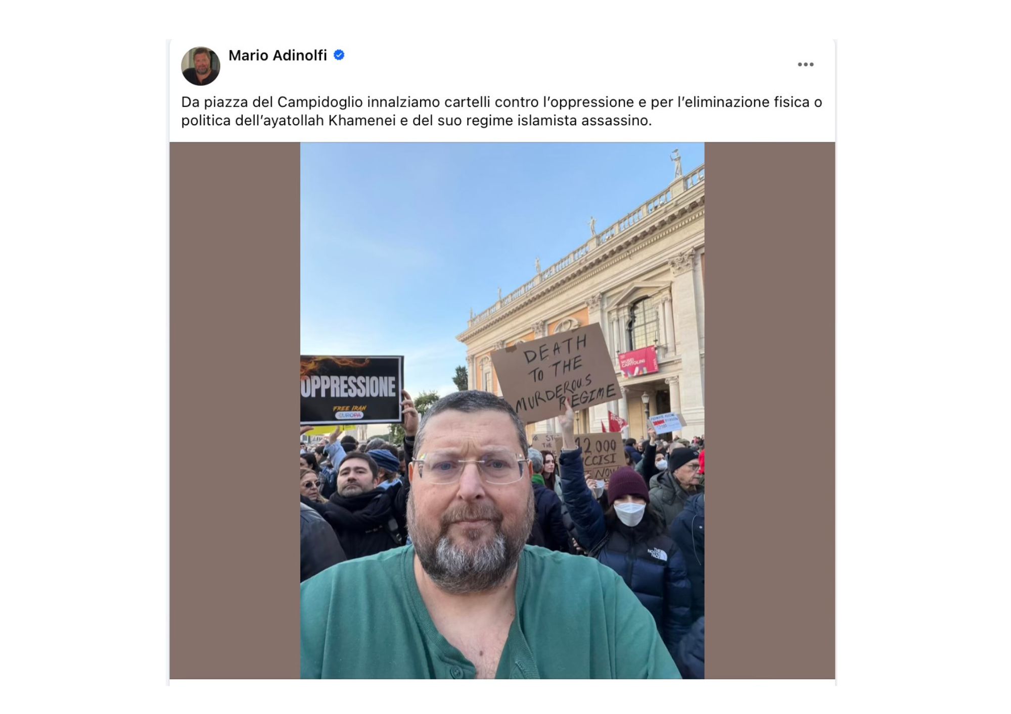 On the Italian front of the same faction, in recent hours Mario Adinolfi - who likes to introduce himself with the self-description “journalist and writer, Member of Parliament in the 16th legislature, poker player, husband and father” - published a photo from the Capitoline Hill, accompanying it with words that capture the style of these self-styled Catholics: “From Capitoline Hill Square we raise placards against oppression and for the physical or political elimination of Ayatollah Khamenei and his murderous Islamist regime.” This encapsulates a constant activation on social media and in the few television showcases that still, unfortunately, offer space to an area of the most radical right, where indignation becomes a slogan and confrontation replaces argument. Adinolfi is also among the figures who have militated around “Il Popolo della Famiglia”, a milieu that publicly claims the defence of familyand Catholic morality but which, in the behaviour and personal histories of some of its protagonists, often ends up exposing fractures and inconsistencies that are hard to ignore. Let us not forget that Adinolfi has fathered several children with different wives, in open disregard of the “Catholic doctrine” he so often invokes.