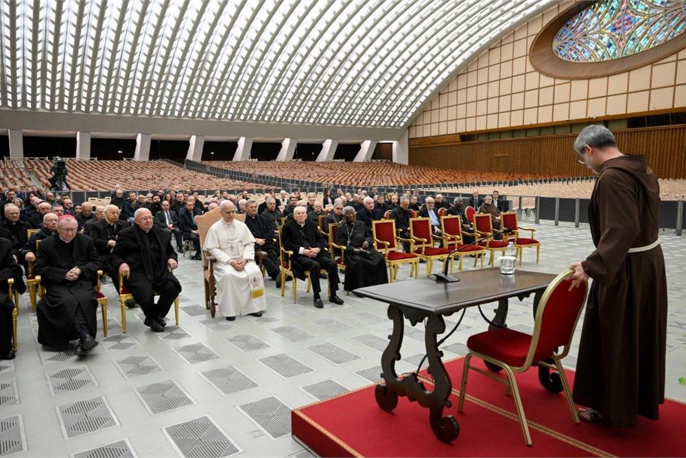 Vatican City - At 9 a.m. this morning, in the Paul VI Hall, the Preacher of the Papal Household, Fr Roberto Pasolini, OFM Cap., delivered the fourth Lenten sermon, entitled “The freedom of God’s children. Perfect joy and death as a sister”. The address forms part of the series of Lenten meditations dedicated to the theme: “If anyone is in Christ, he is a new creation (2 Cor 5:17). Conversion to the Gospel according to Saint Francis”, which the friar has been giving in recent weeks.